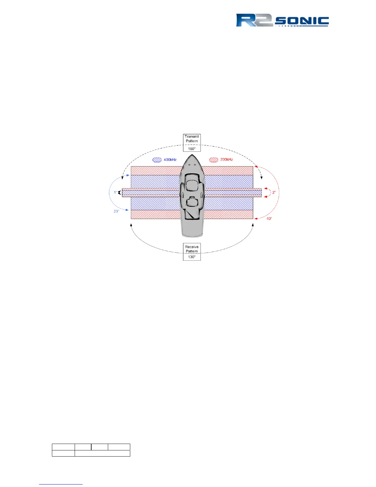 In general, the receive pattern is 130° (normal bathymetry survey) in the across-track. The along-