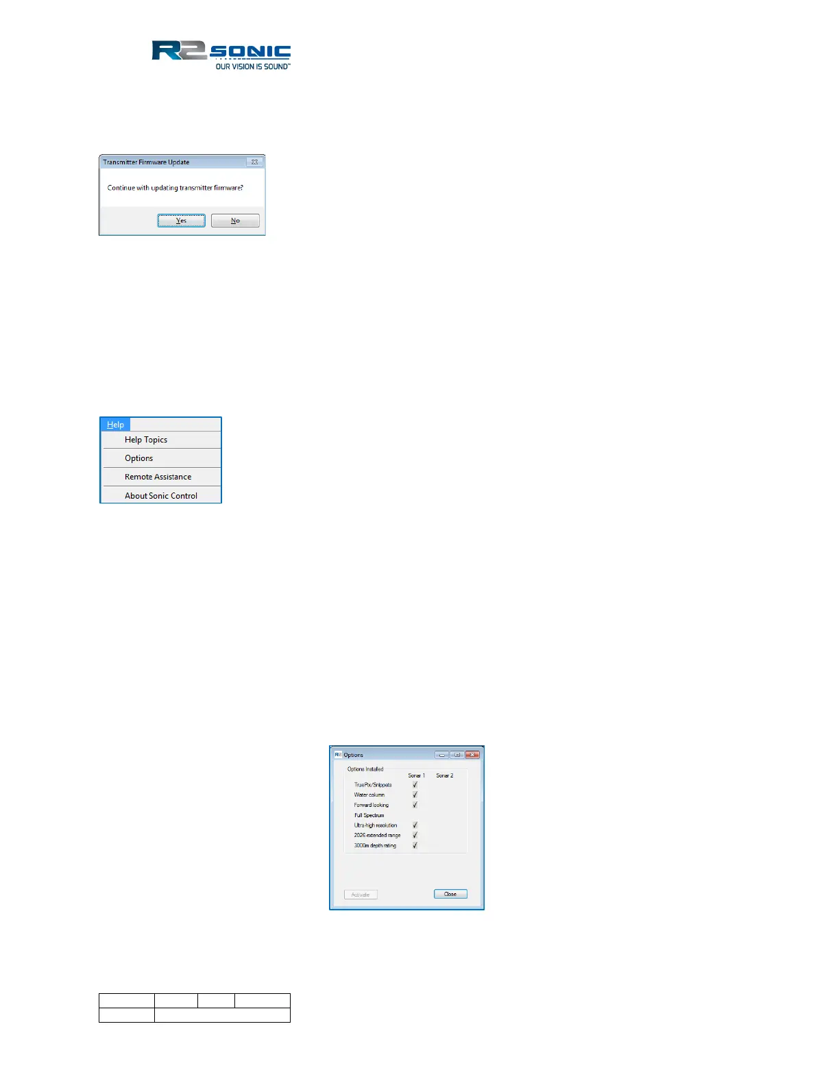 options are enabled or disabled, as required, in the Sonar Settings (except for the 3000m depth