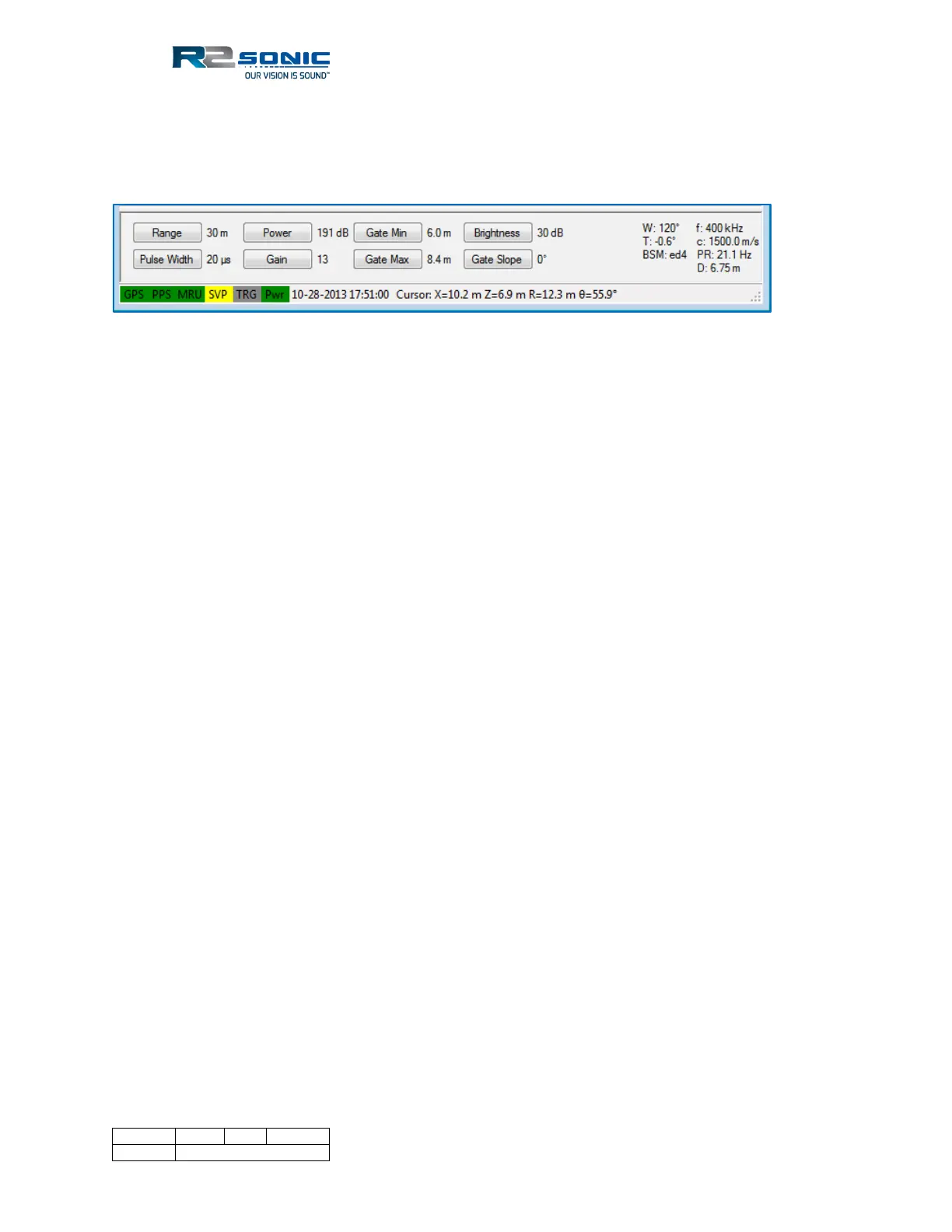 The main operating parameters of the Sonic MBES are controlled by the buttons in the lower