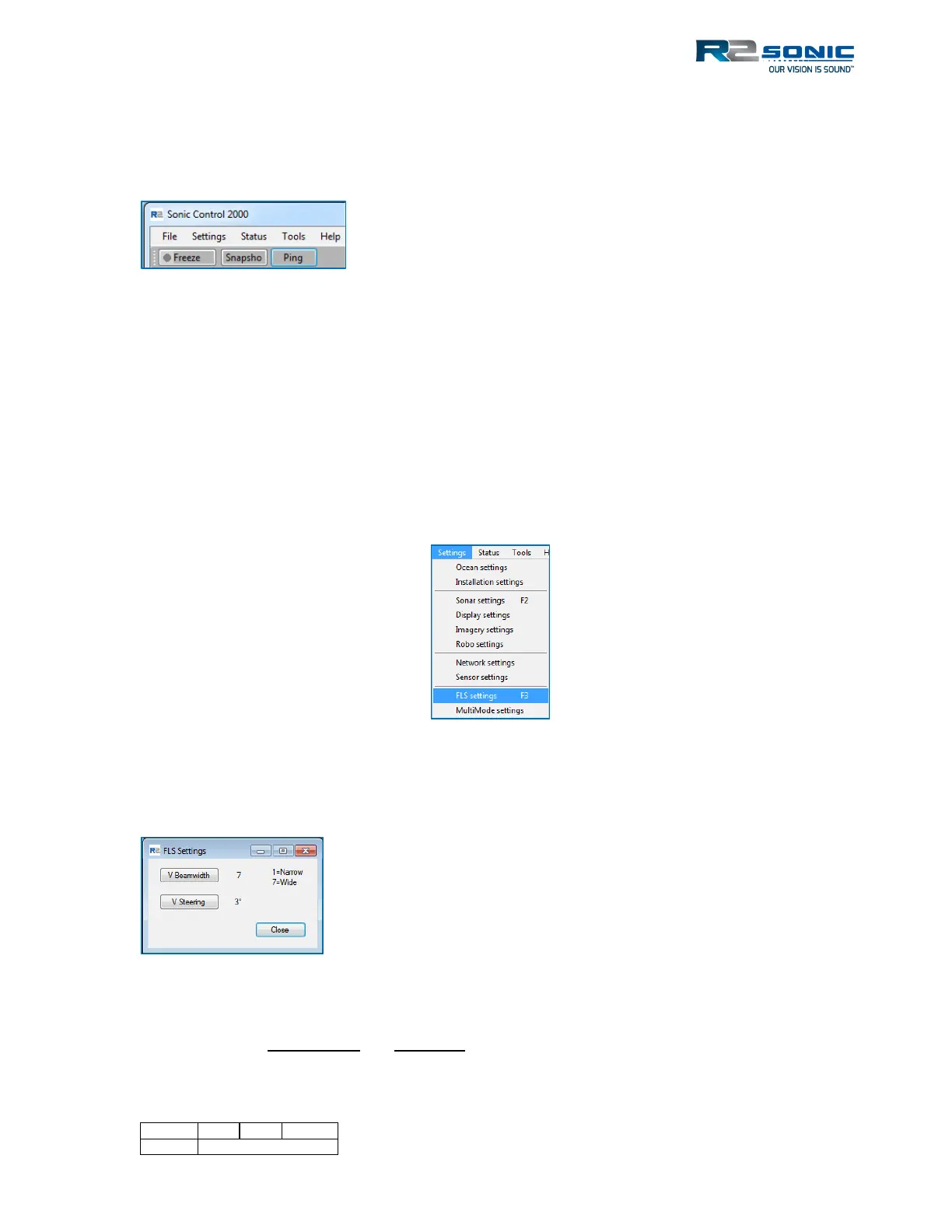 additional FLS option in the Settings menu that allows the user to set the Vertical Beamwidth and