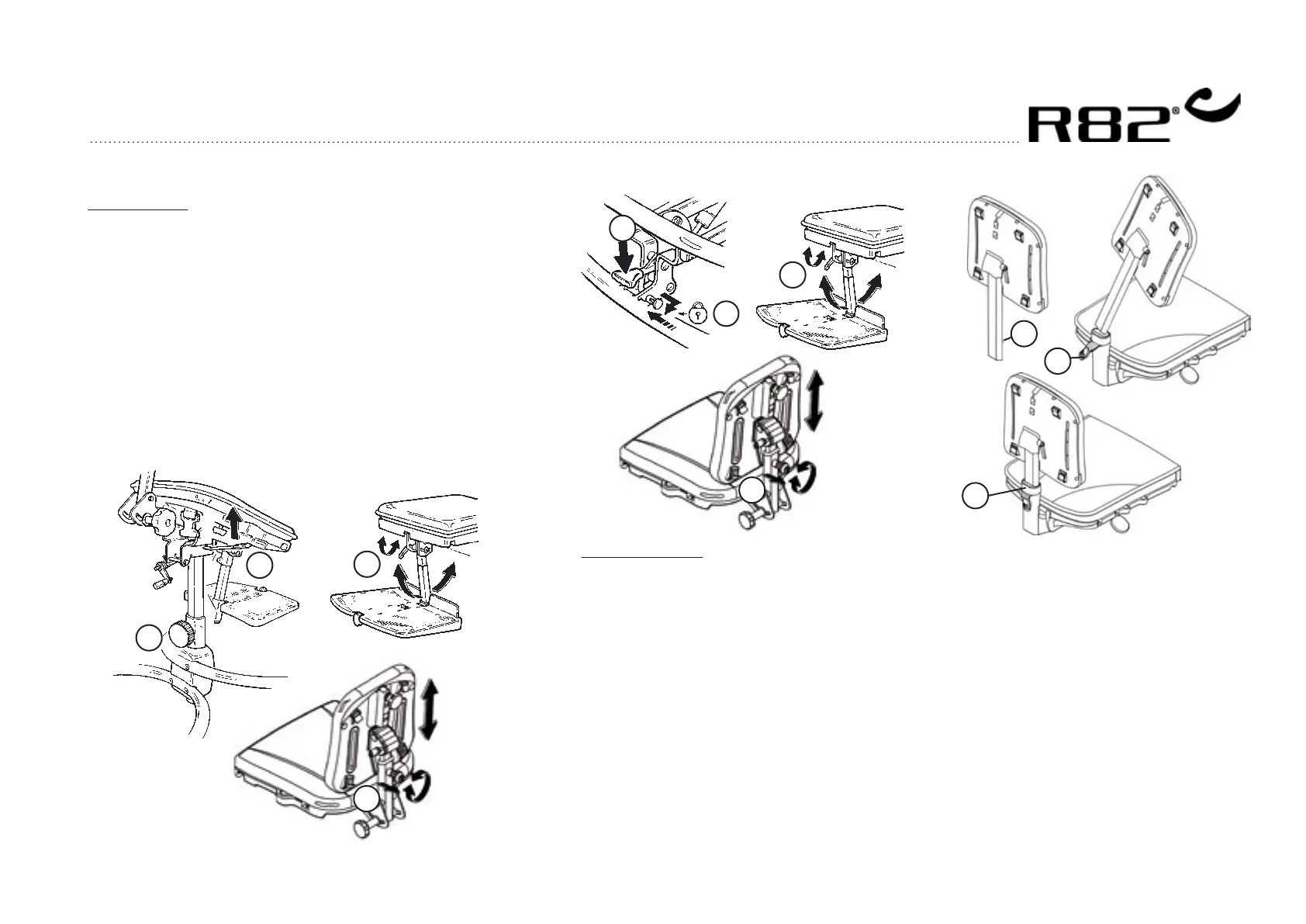 Str. 1+2: Ryggen monteres på setet ved å dra ut knappen (H) bak på ryggstøttestangen, og