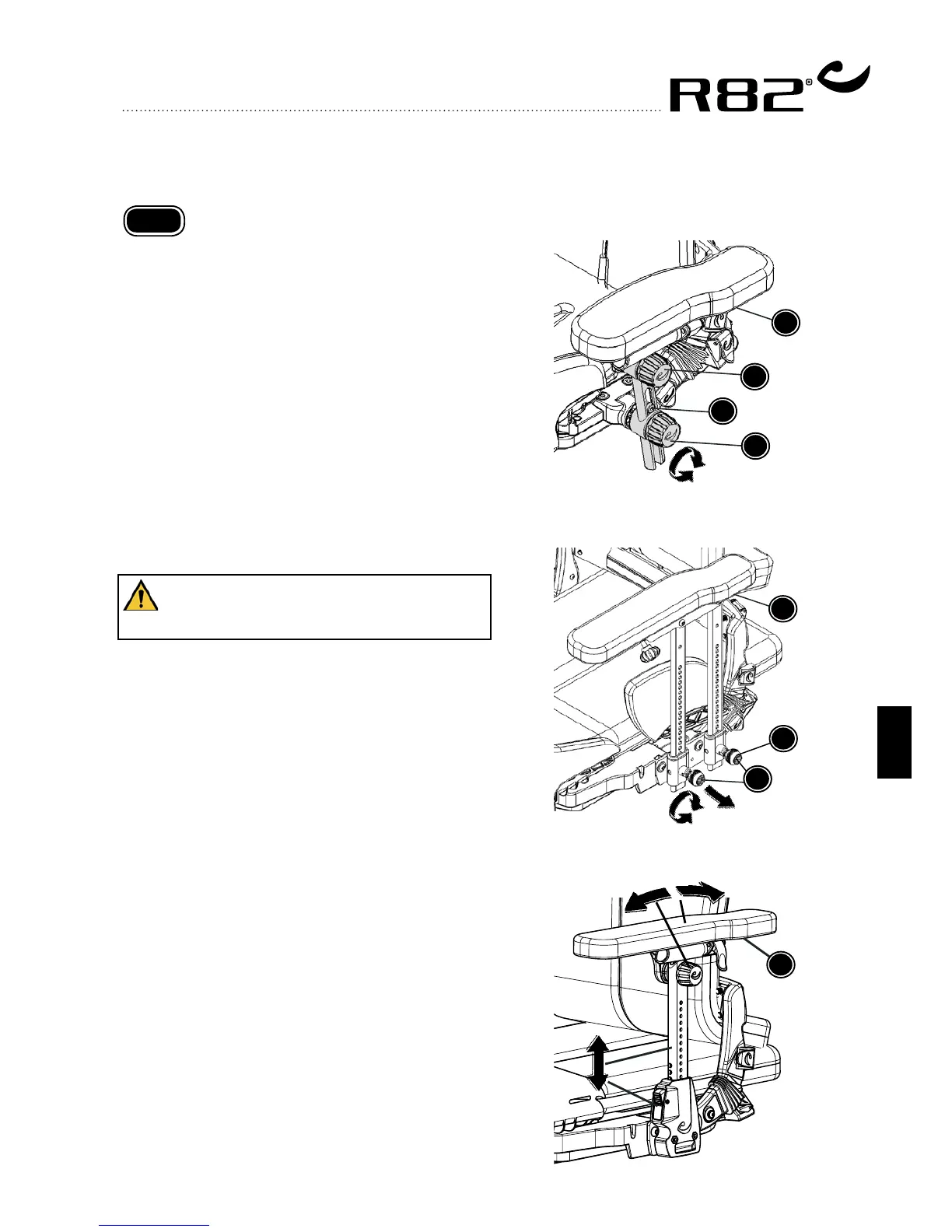 Angling the arm rest bar (only size 1+2+3):