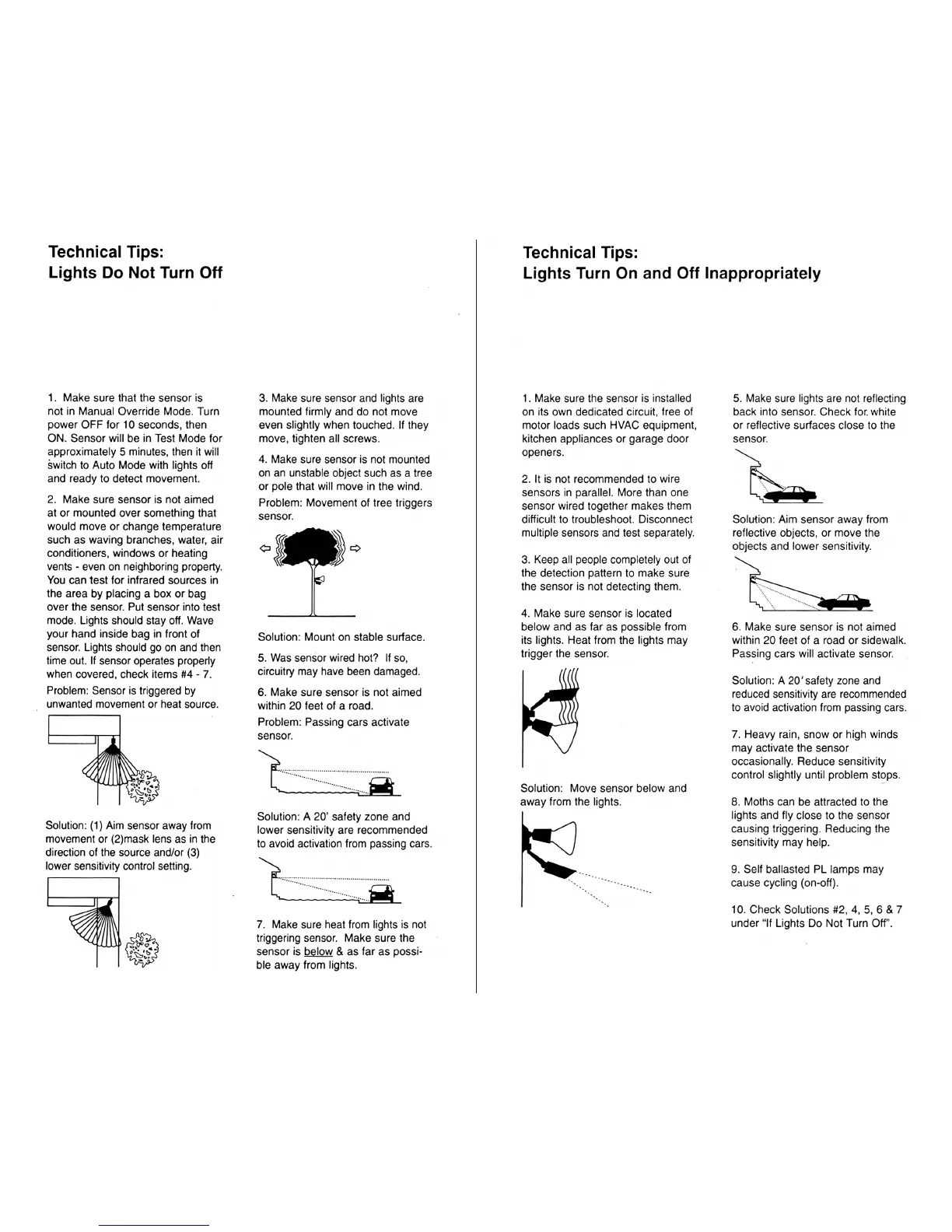 RAB Lighting STL12LV - Technical Tips: Lights Do Not Turn Off; Technical Tips: Lights Turn On and Off Inappropriately