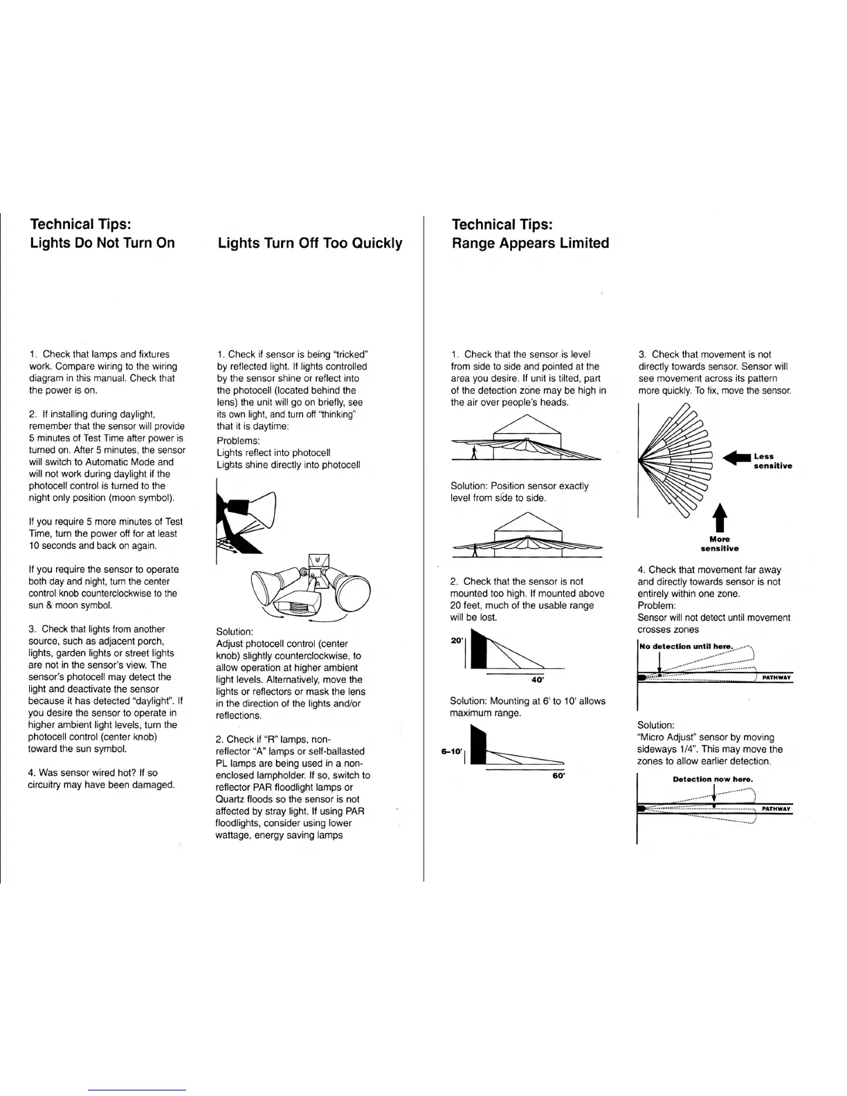 RAB Lighting STL12LV - Technical Tips: Lights Do Not Turn On; Technical Tips: Lights Turn Off Too Quickly