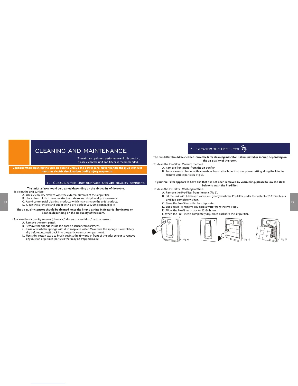 Rabbit Air BioGS SPA-421A - Cleaning and Maintenance; Unit Surface and Sensor Cleaning; Pre-Filter Cleaning