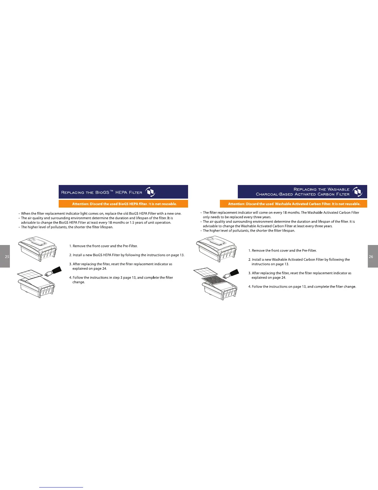 Rabbit Air BioGS SPA-421A - Filter Replacement; Replacing the BioGS HEPA Filter; Replacing the Washable Carbon Filter