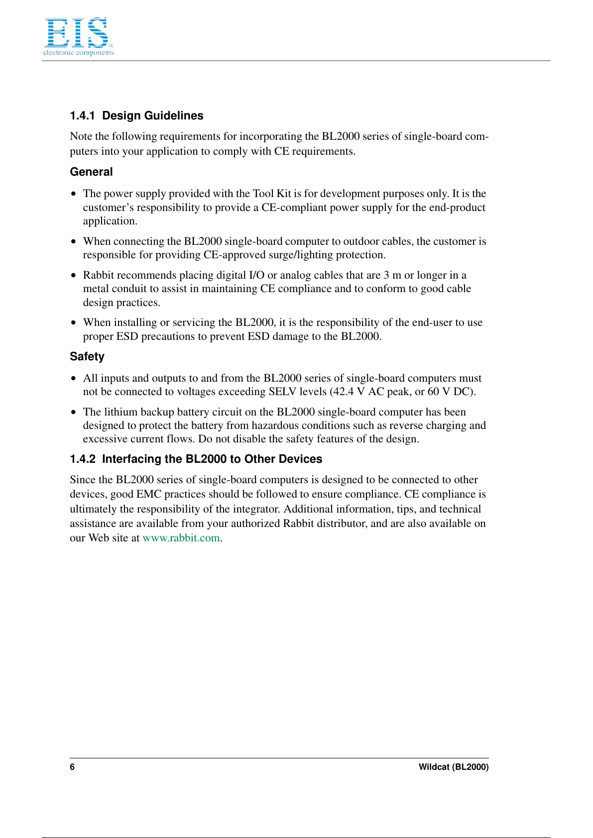 • All inputs and outputs to and from the BL2000 series of single-board computers must