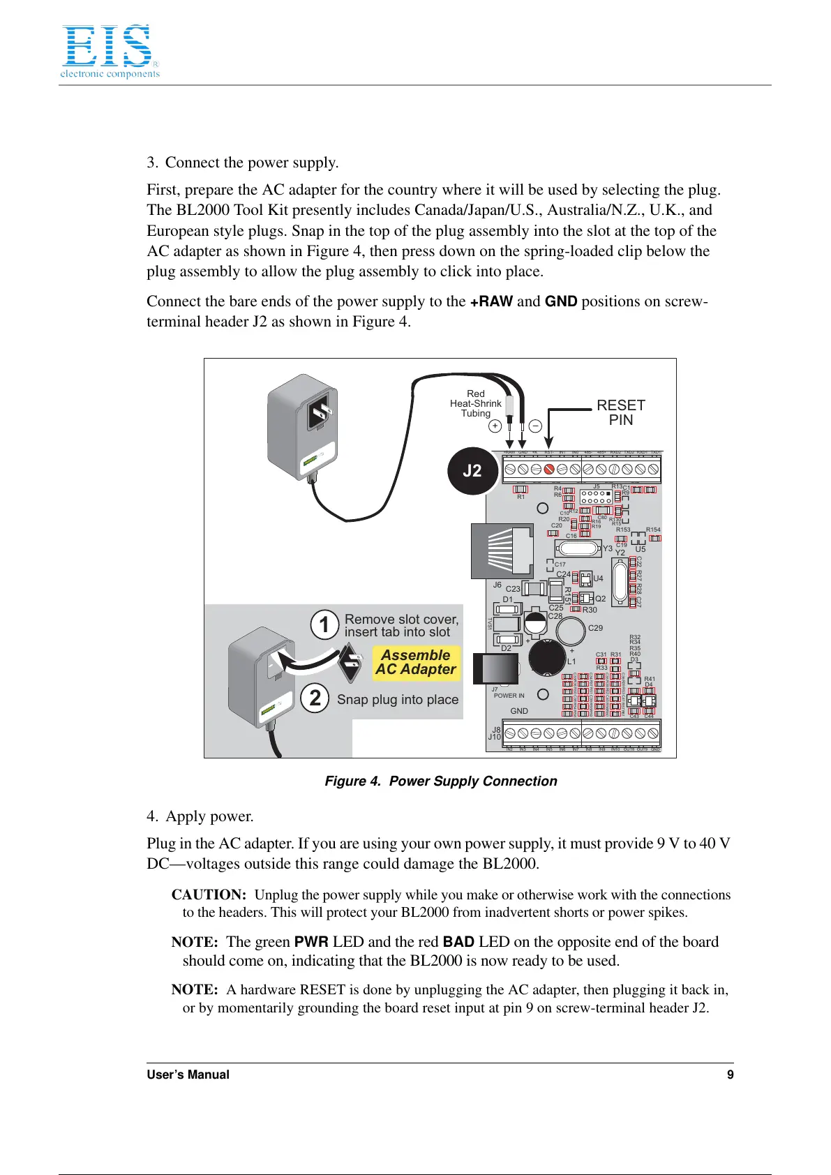 to the headers. This will protect your BL2000 from inadvertent shorts or power spikes.