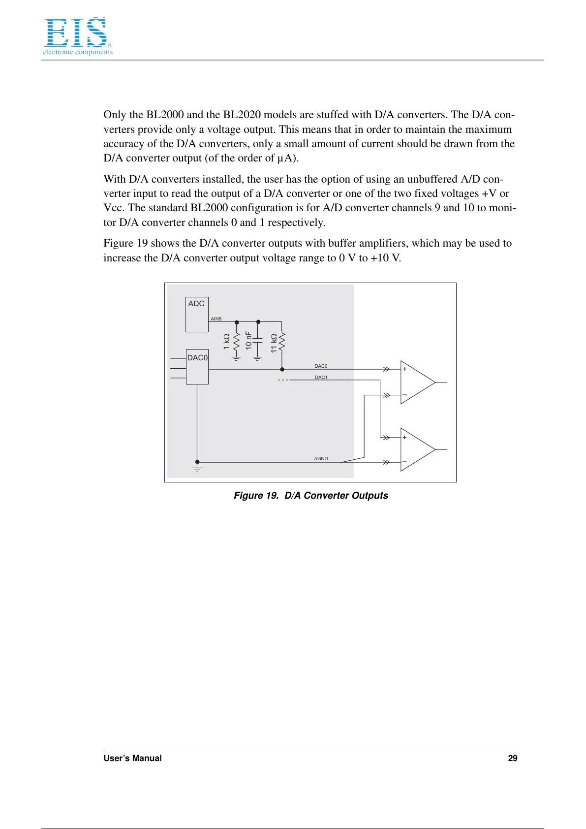 Figure 19 shows the D/A converter outputs with buffer amplifiers, which may be used to