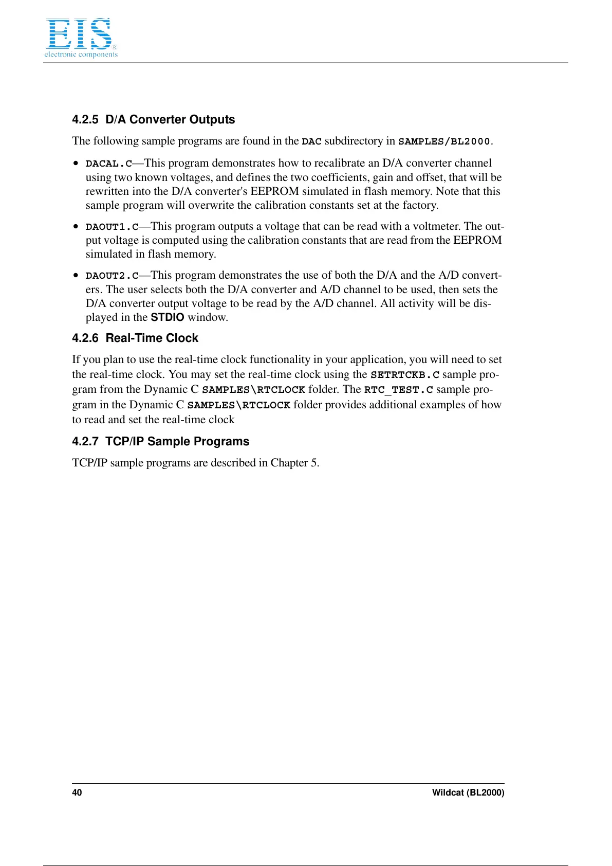 • DACAL.C—This program demonstrates how to recalibrate an D/A converter channel