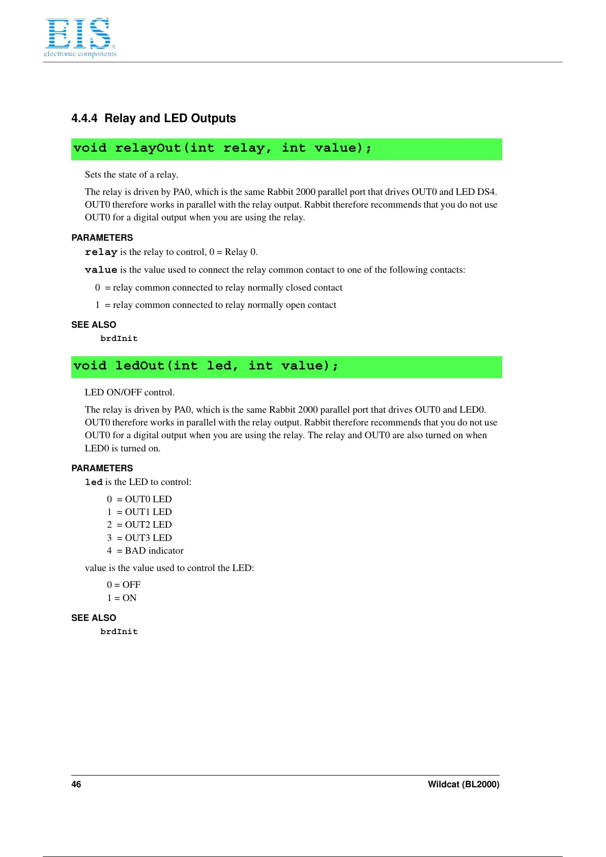 OUT0 therefore works in parallel with the relay output. Rabbit therefore recommends that you do not use