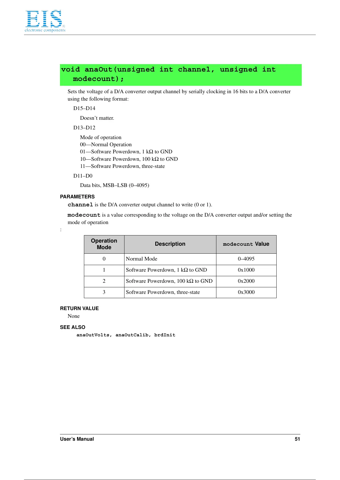 modecount is a value corresponding to the voltage on the D/A converter output and/or setting the