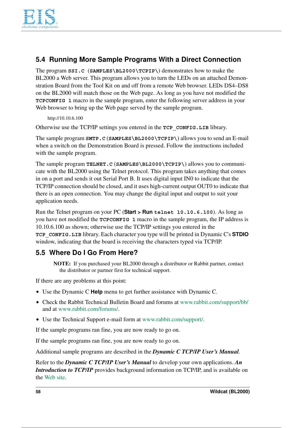 Additional sample programs are described in the Dynamic C TCP/IP User’s Manual.