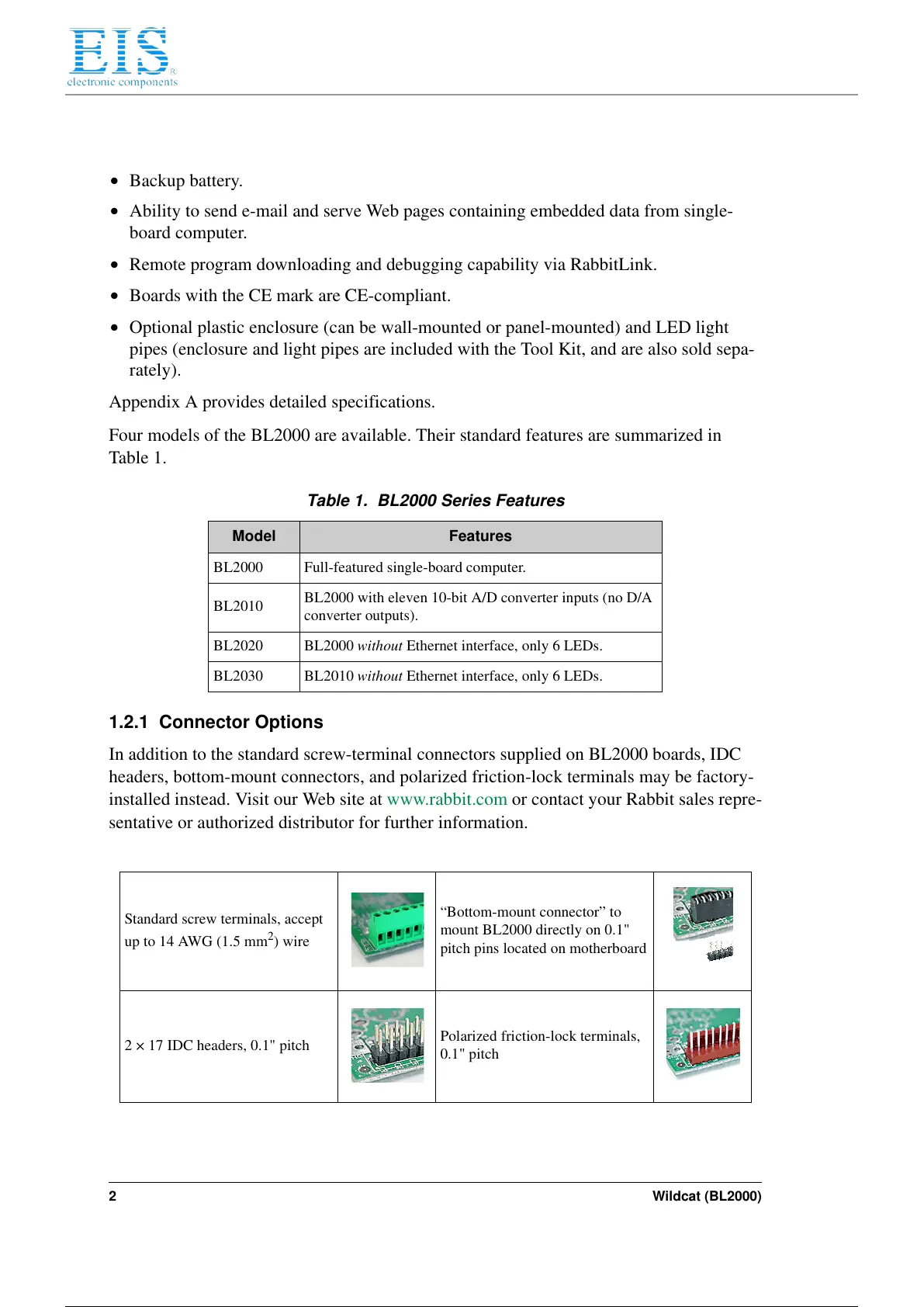 Table 1. BL2000 Series Features