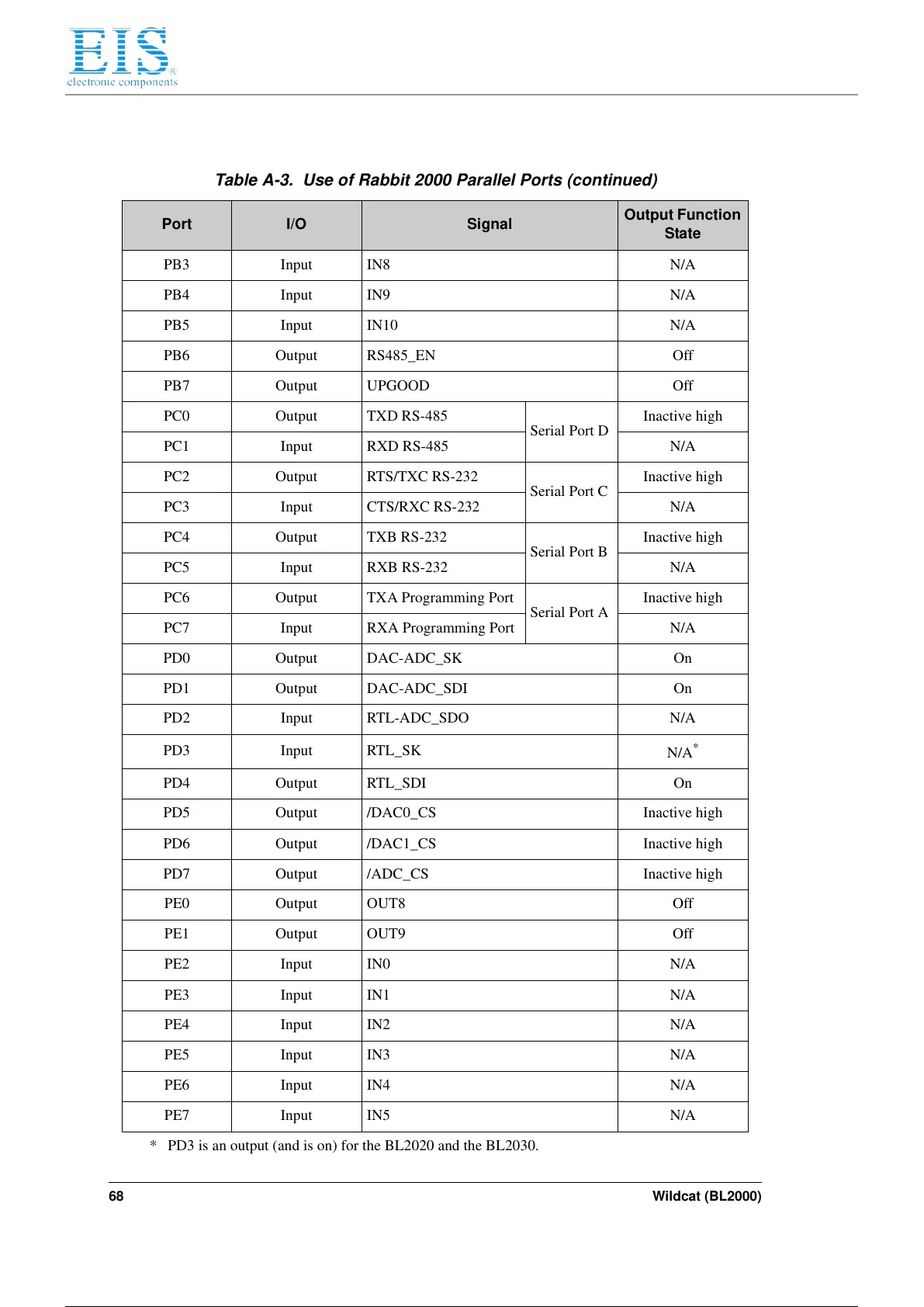 Table A-3. Use of Rabbit 2000 Parallel Ports (continued)