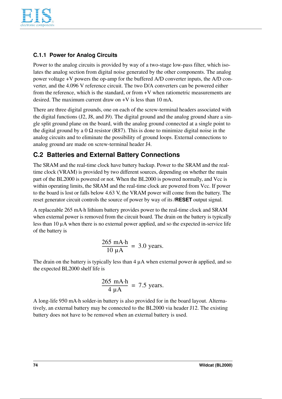 tively, an external battery may be connected to the BL2000 via header J12. The existing