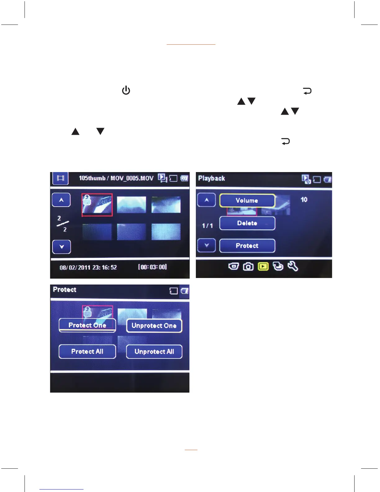 press REC/OK button to enter Protect sub menu, Up/Down button