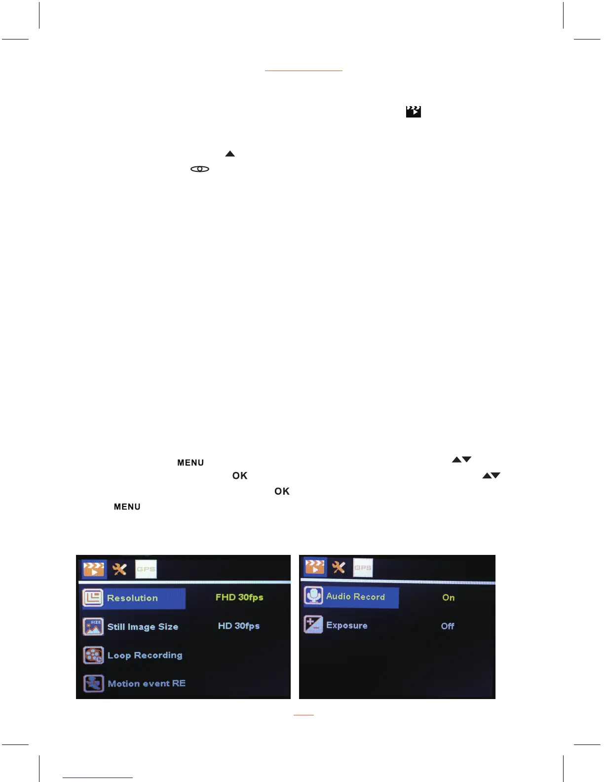 menu, then press REC button to enter the setting, press Up / Down button to select