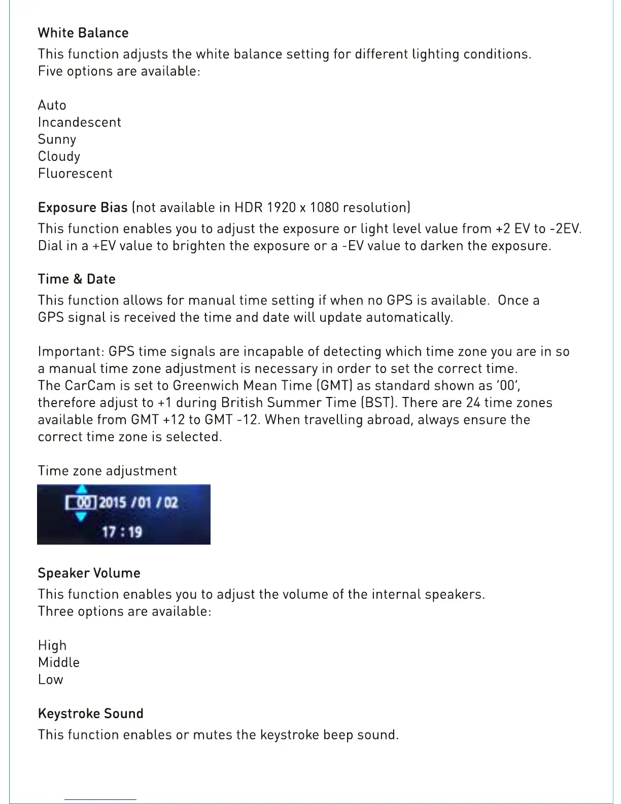 Rac 5 - White Balance; Exposure Bias; Time & Date; Speaker Volume