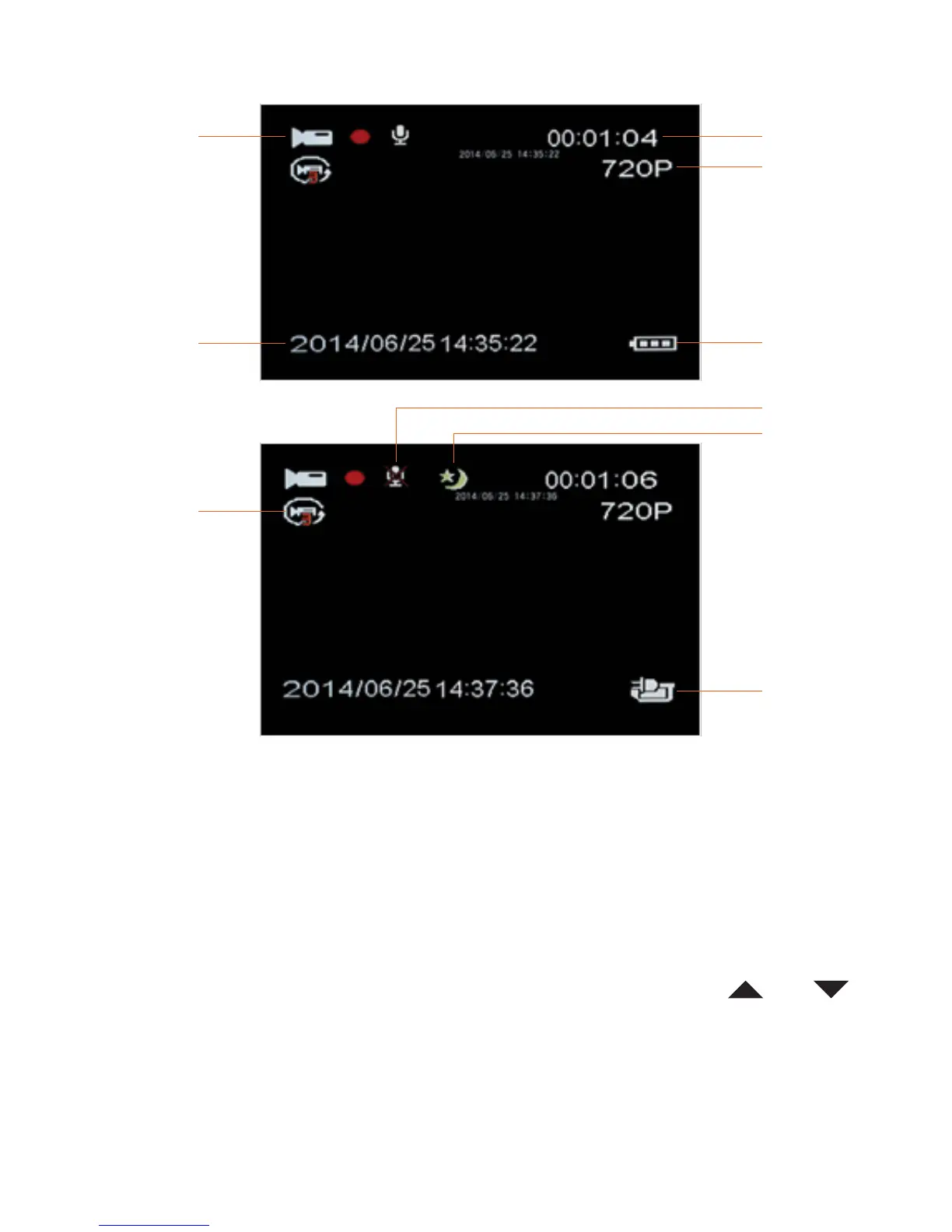 There are two menus in the CarCam. To enter the Video menu, press the Menu button