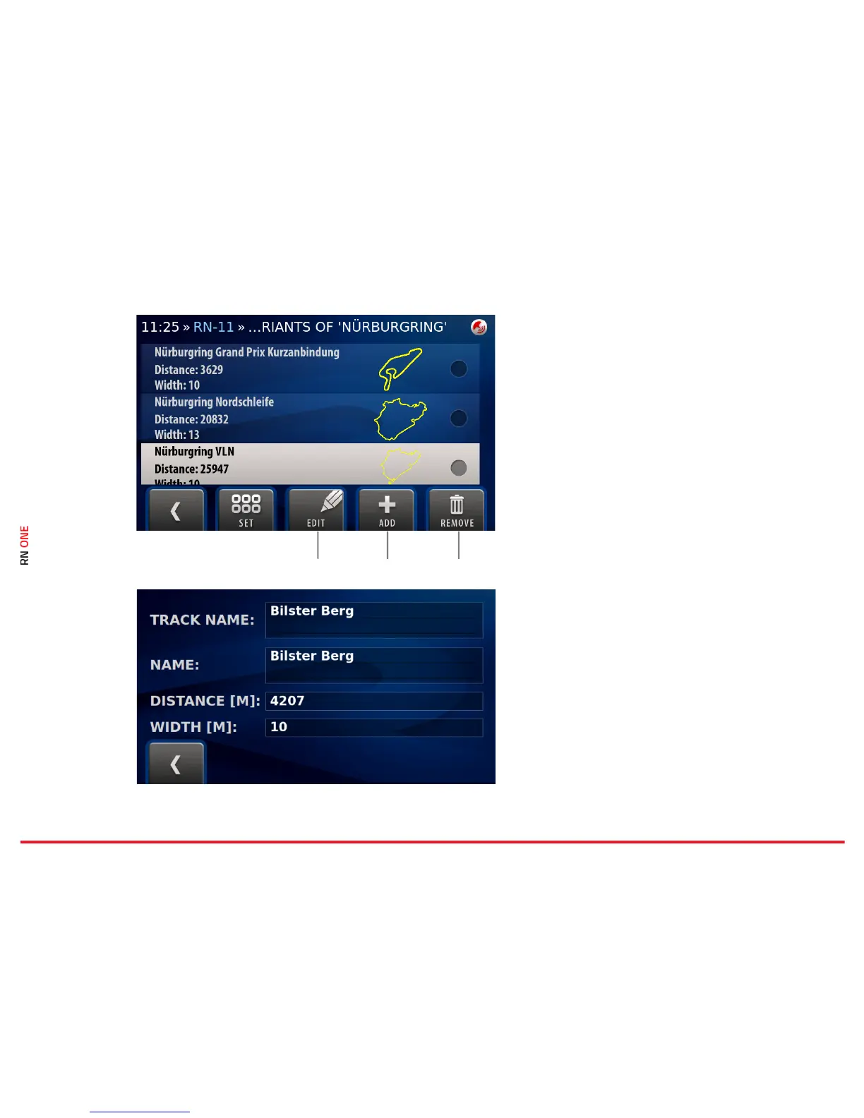 track name, total distance, track width.