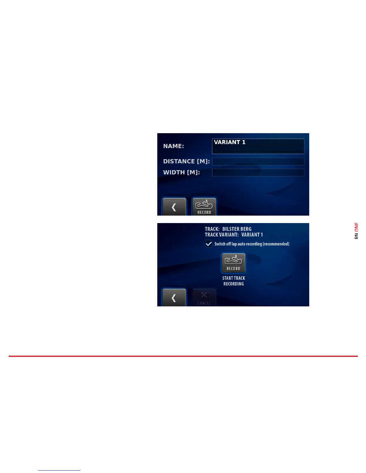 The RN ONE automatically records the new track.