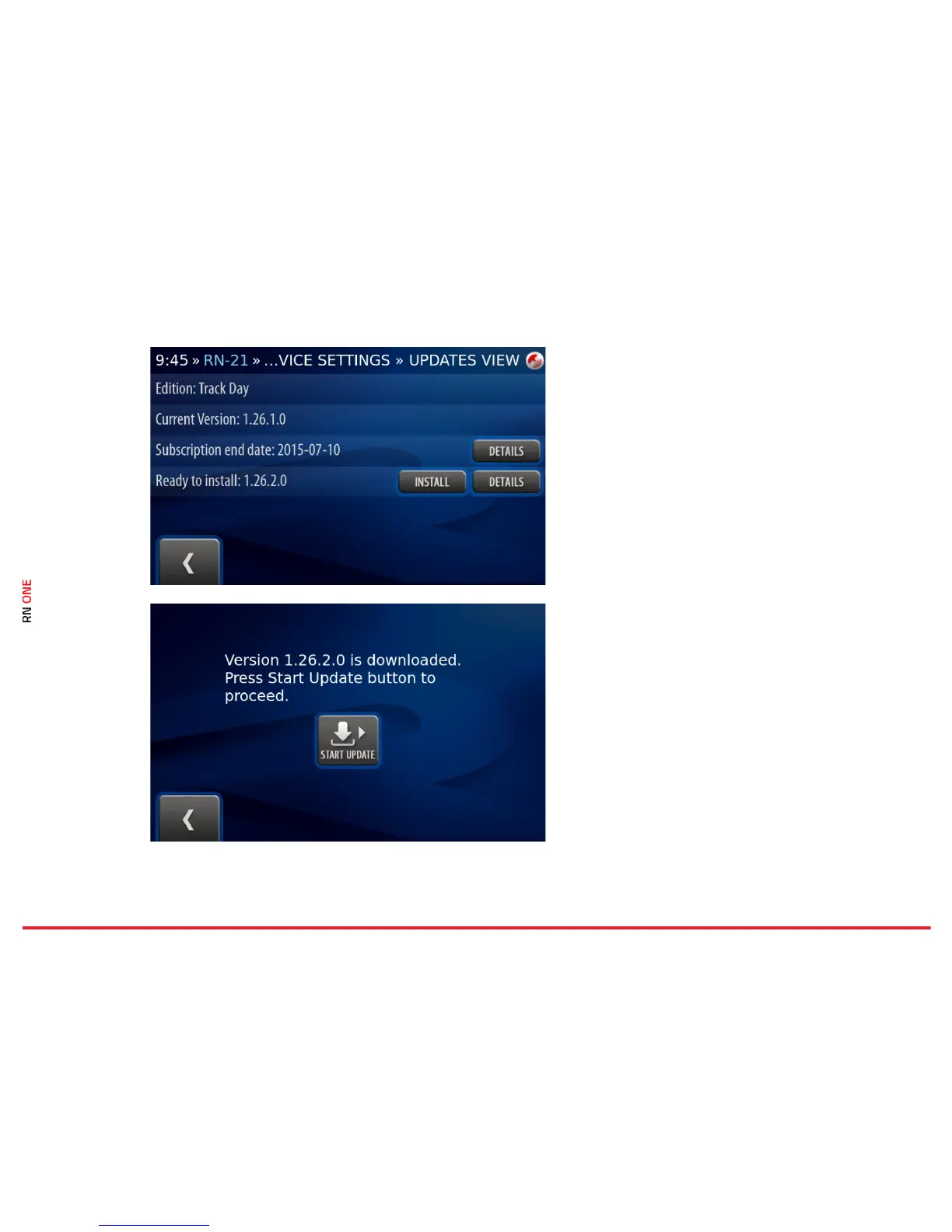 Race Navigator ONE - Software Update Process - Part 2; Installing Downloaded Software; Starting the Update
