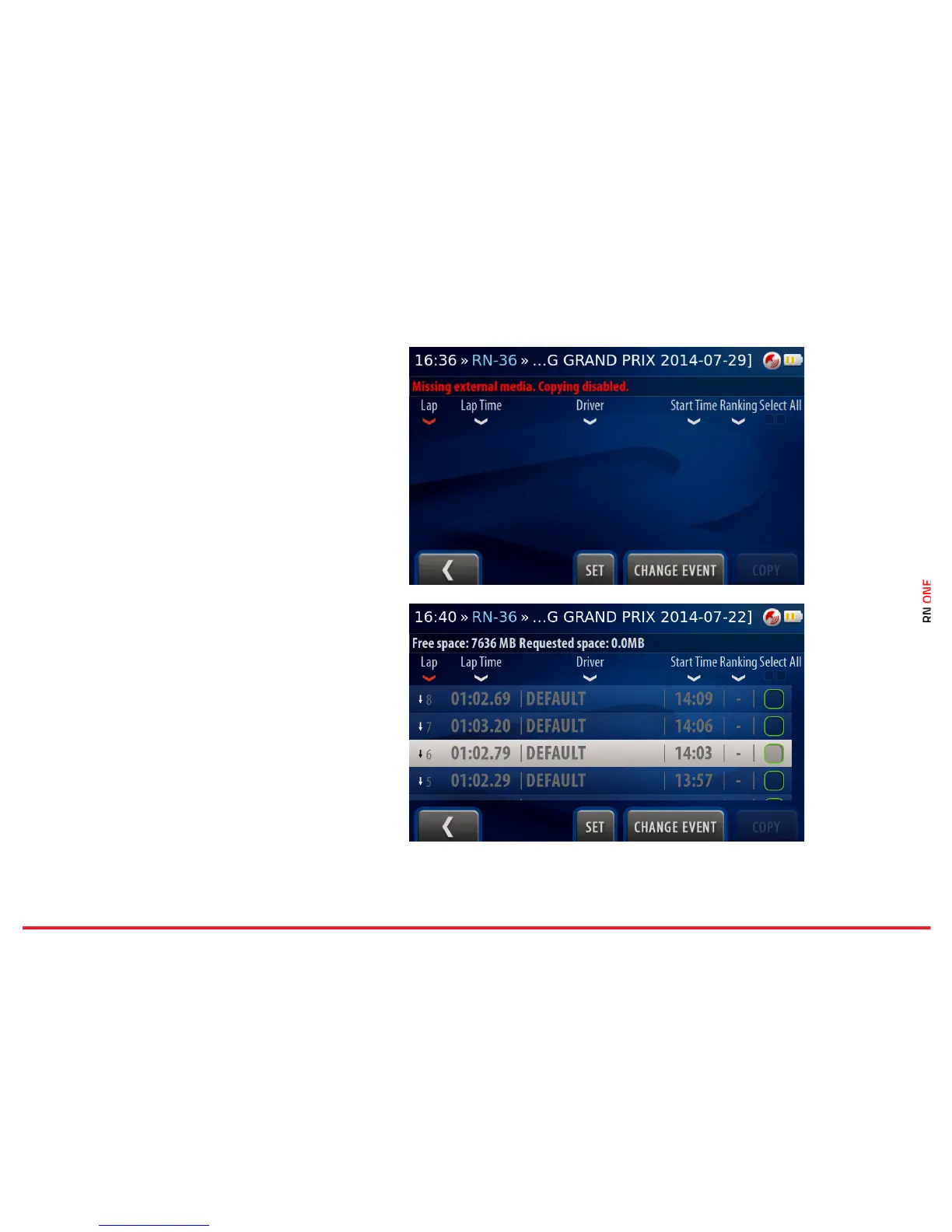 All laps from selected event are enlisted. Full laps
