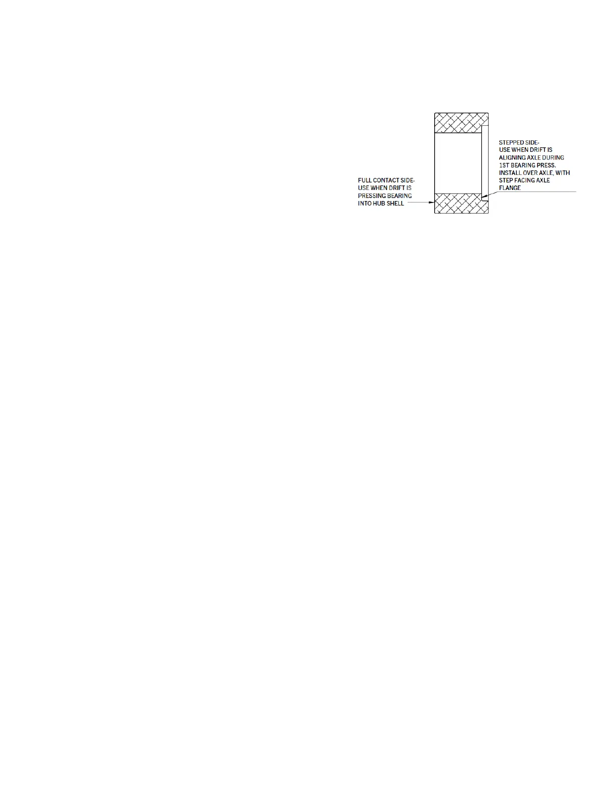 4. Insert the bearing press through the hub, all drifts, axle, and bearing. Tighten the press until the bearing is fully installed.
