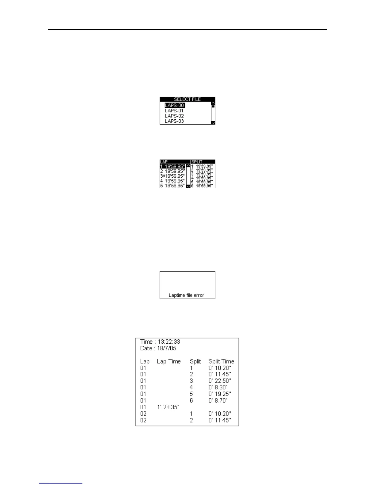 To review a ‘Laps-xx.txt’ file with lap and split time data: