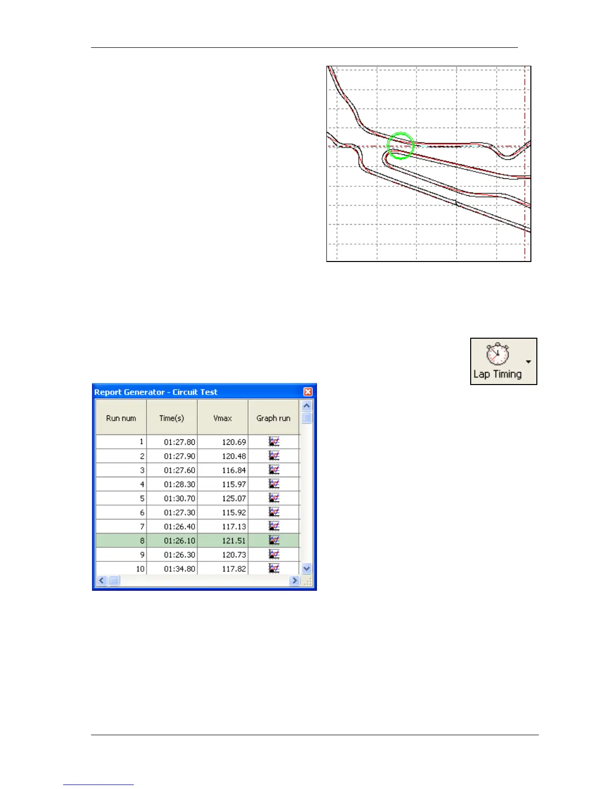 menu select ‘Lap Timing – Split Line’. The results table will show the split times as well as