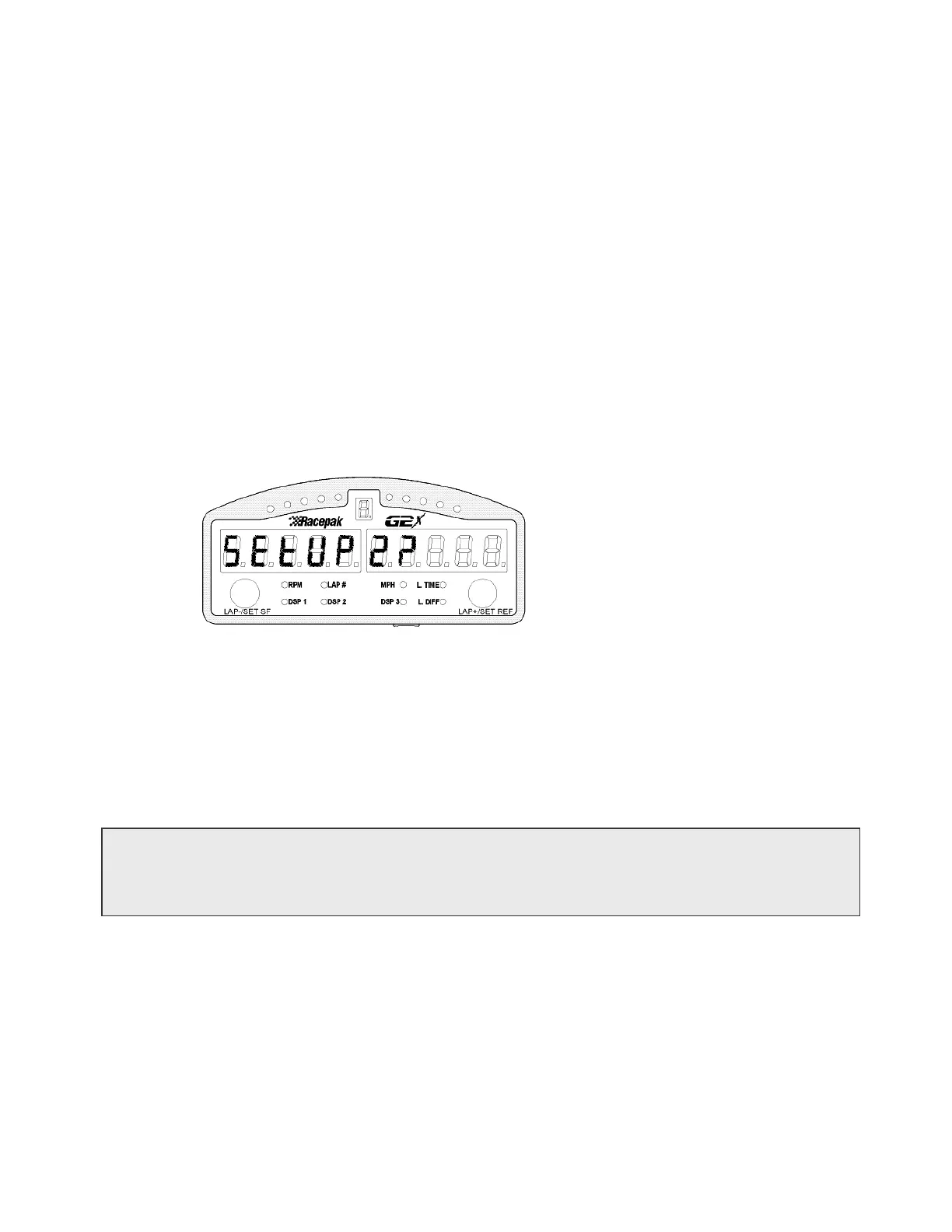 Setup Mode 2 can be entered either from the Normal or the Lap Replay Display modes.