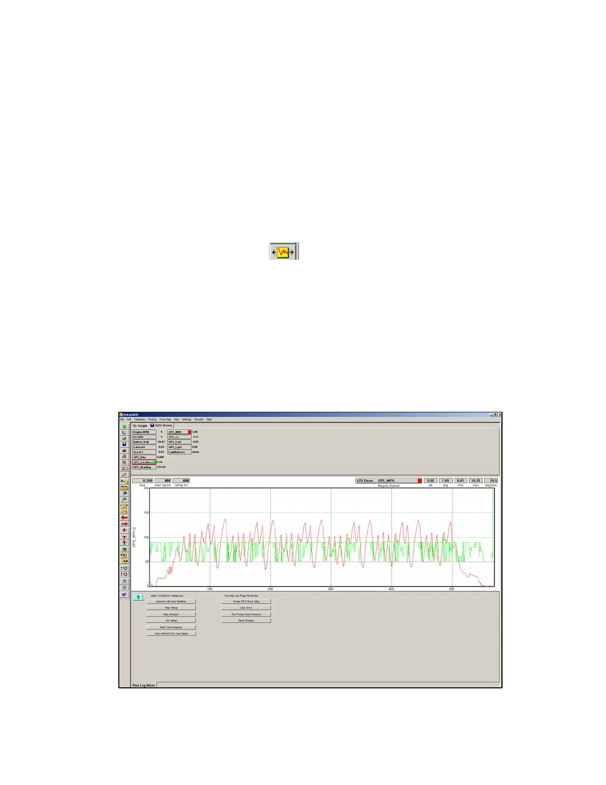 At this time, the initial run should be in view, in the DataLink software. To graph the GPS_MPH