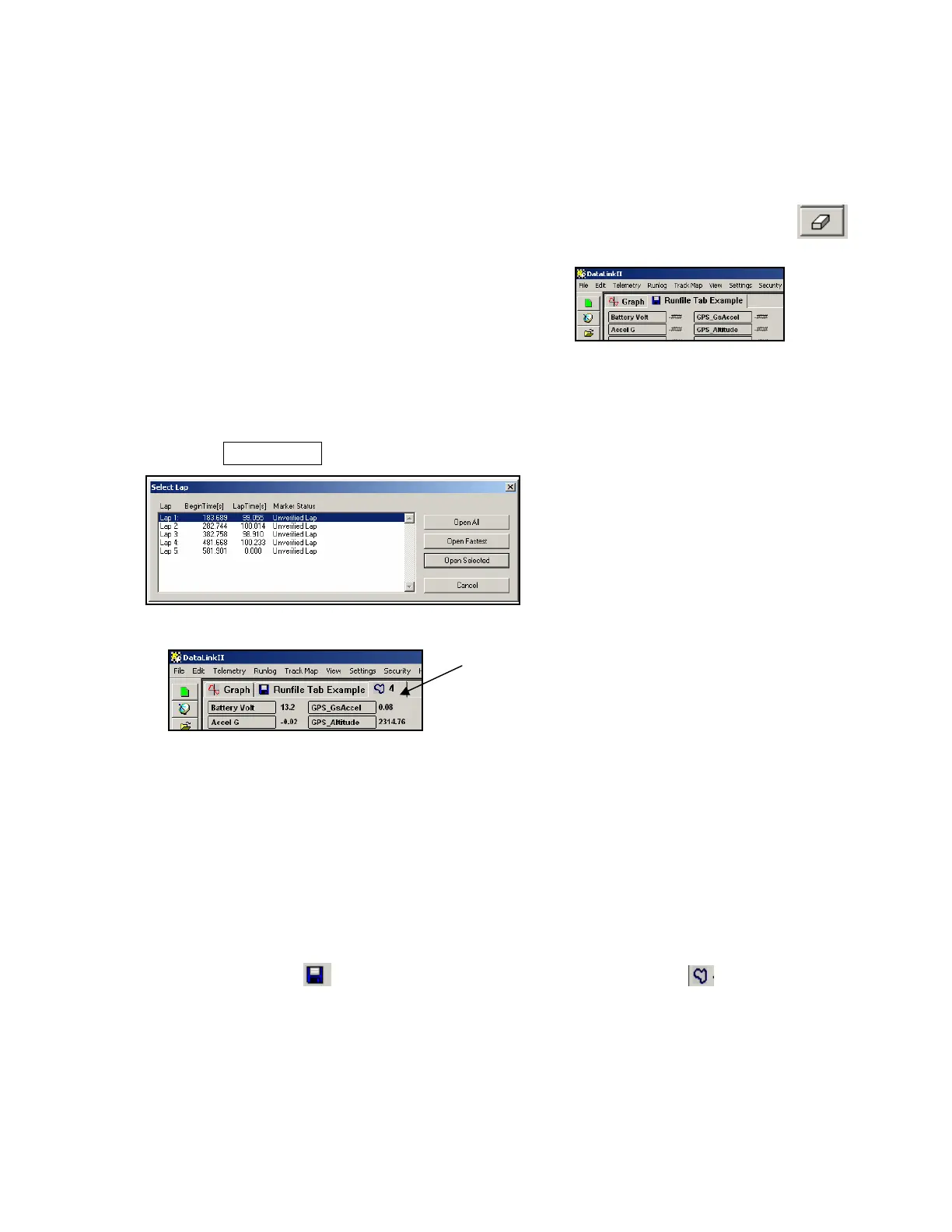 Referring back to the above Select Lap dialog window, laps can be opened by three different methods: