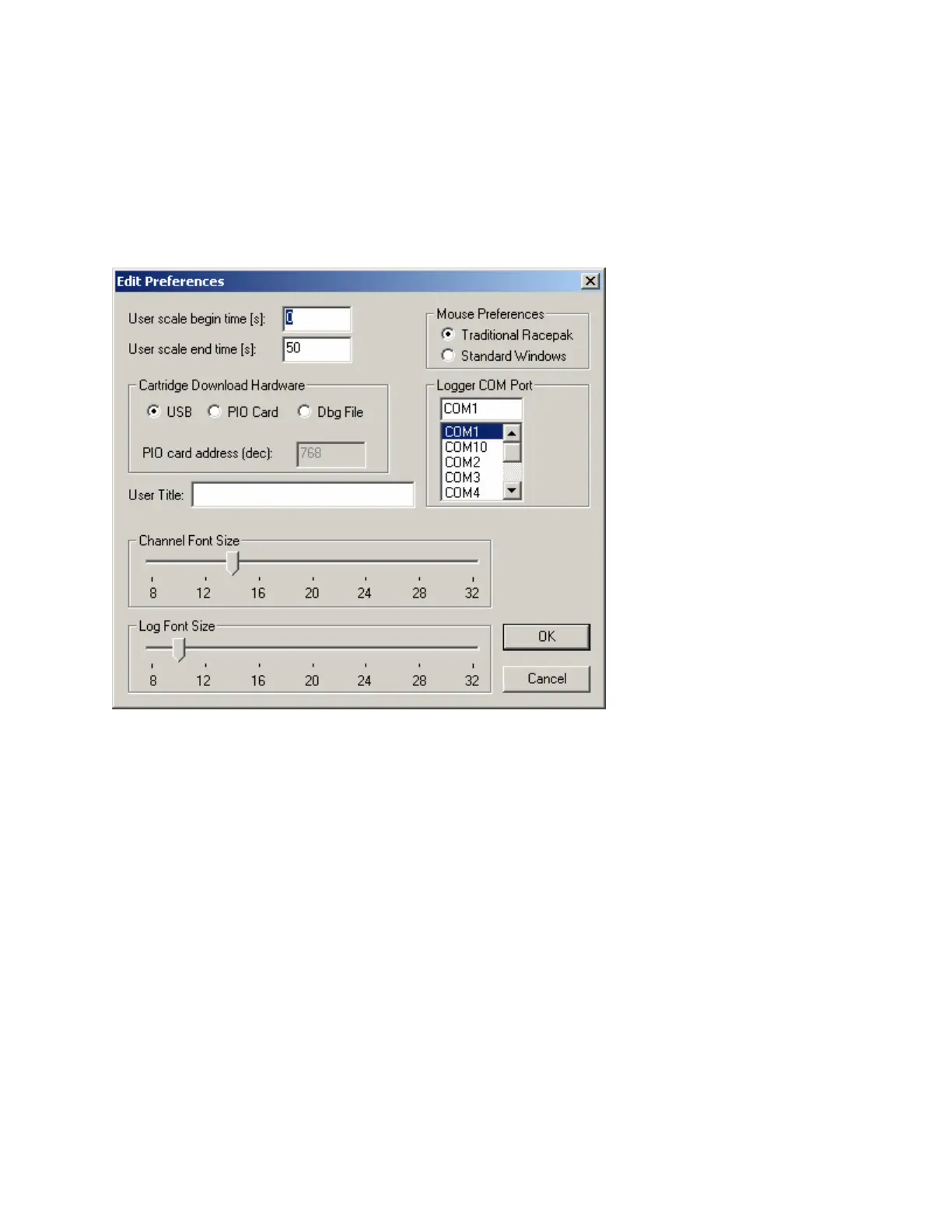 Adjust the Channel Button font and Runlog font through use of the slider bar located below each