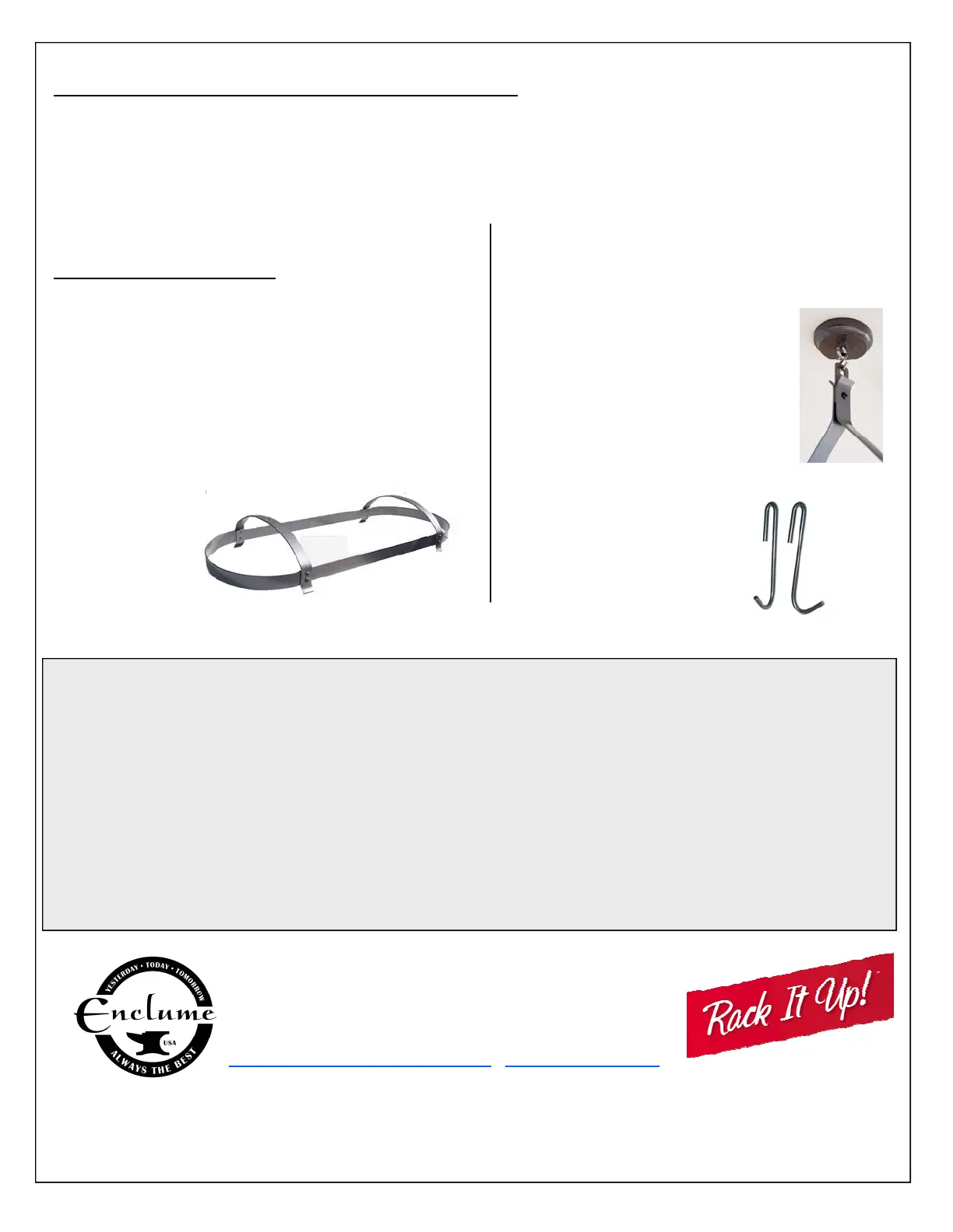 RACK IT UP by Enclume ™ is a trademark of Enclume Design Products, Inc. All rights reserved. Made in China. Packed in the U.S.A.