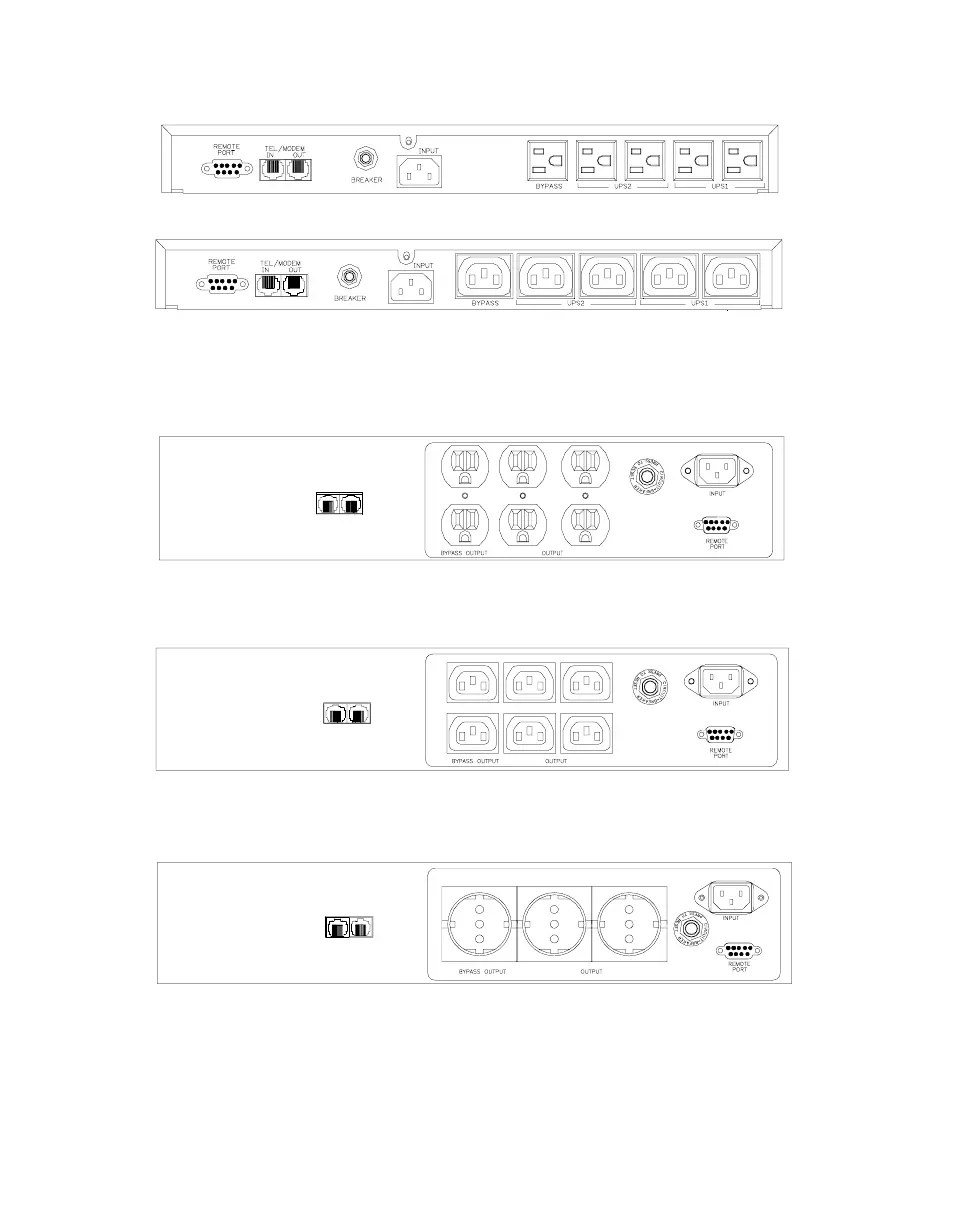 Rackmount 1000VA - Back Panel (600 VA; 1000 VA), 1 U size; Back Panel (1200 VA; 1500 VA), 2 U SIZE