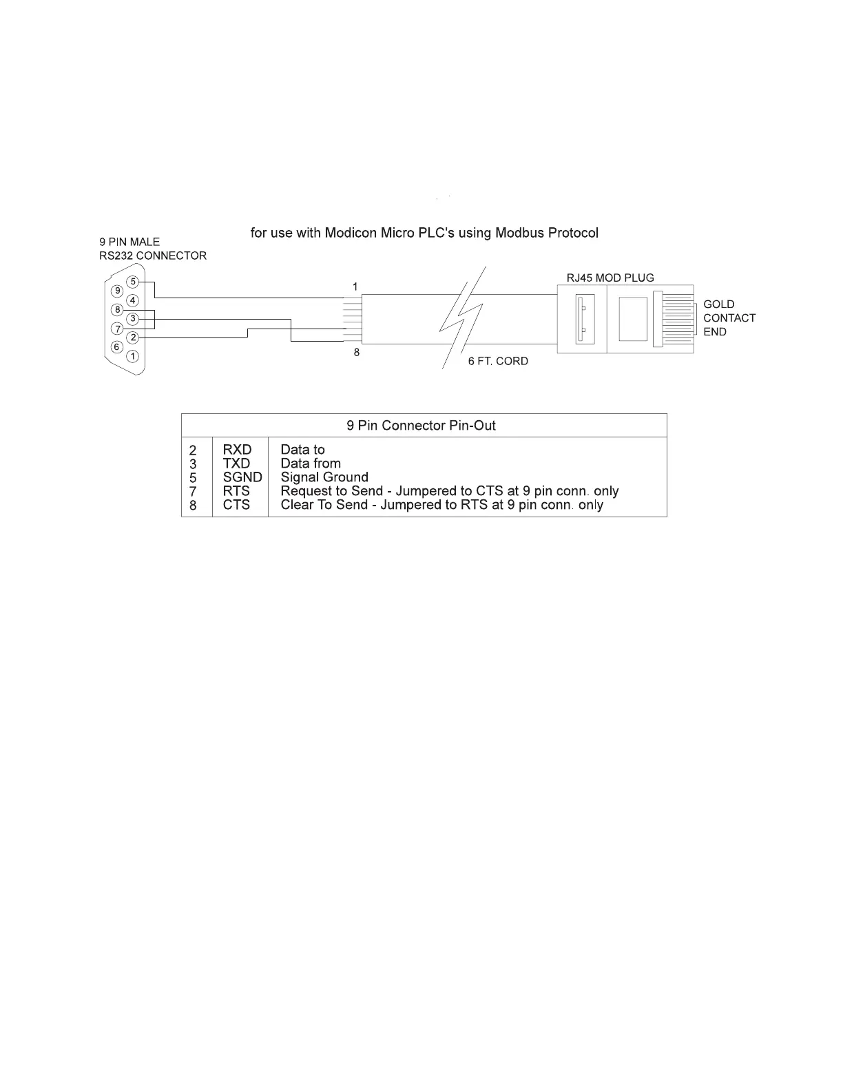 connectors on each end. The Modicon adaptor is an RJ-45 female to D-sub 9