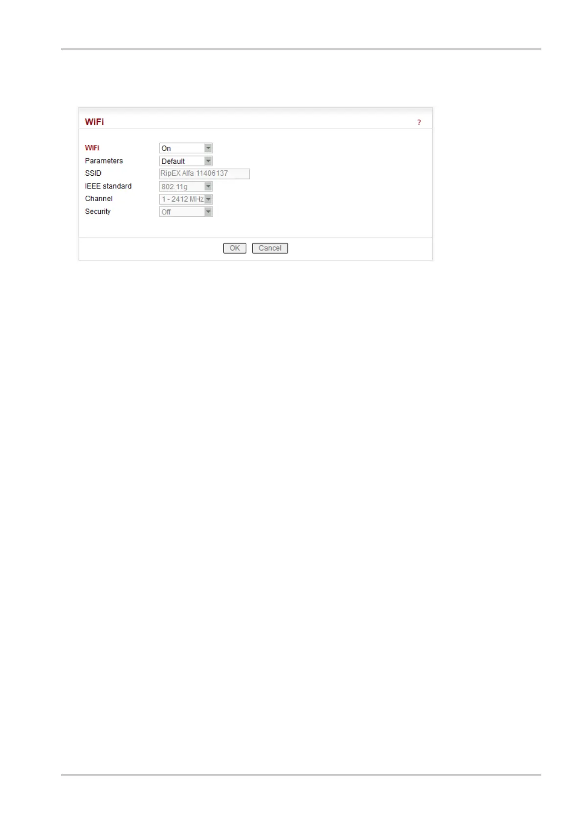 When "On", RipEX management can be executed over WiFi using the W1 - WIFI/USB adapter from