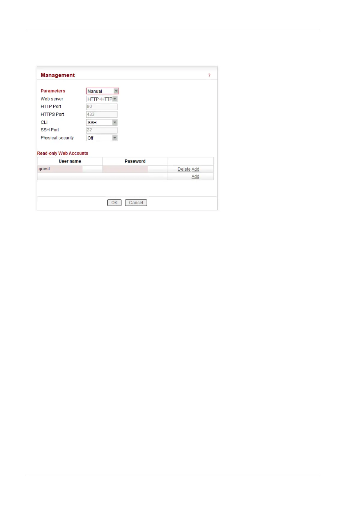 Required protocol for configuration web page is set here. If "Off", configuration web pages