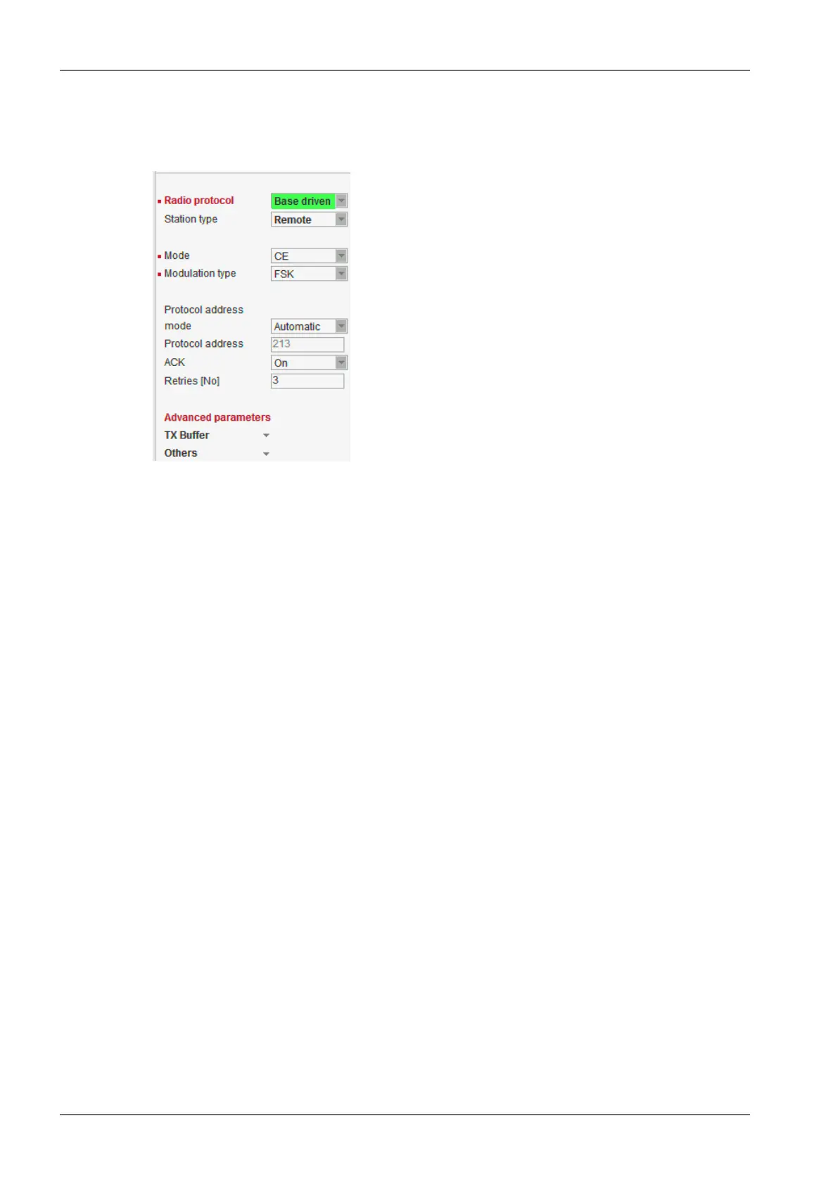 The same Protocol address must be set in the Base station/Radio protocol/Remotes.