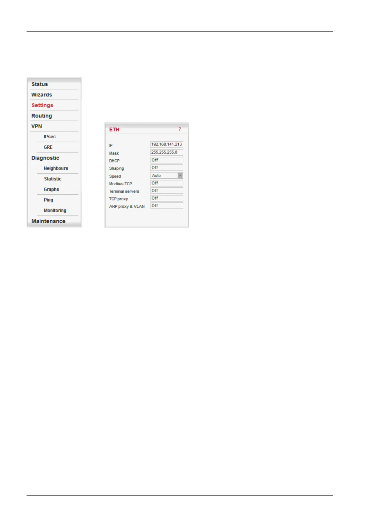ETH interface of RipEX. The Mask set is the same as on RipEX ETH, the Gateway is the IP address