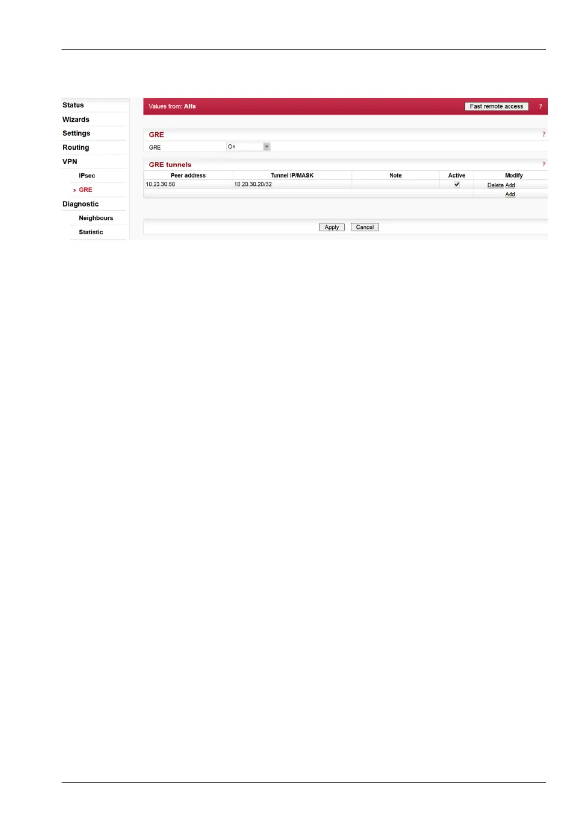 Every line in the "GRE tunnels" table defines one GRE tunnel. It is recommended that maximum