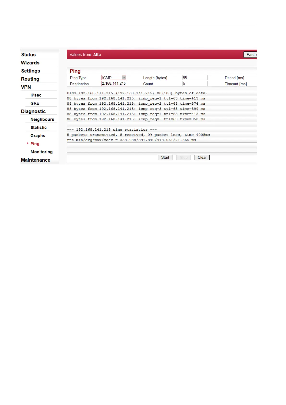 NOTE: Ping utility generates on-line report each 2 seconds while you are connected to Local unit and