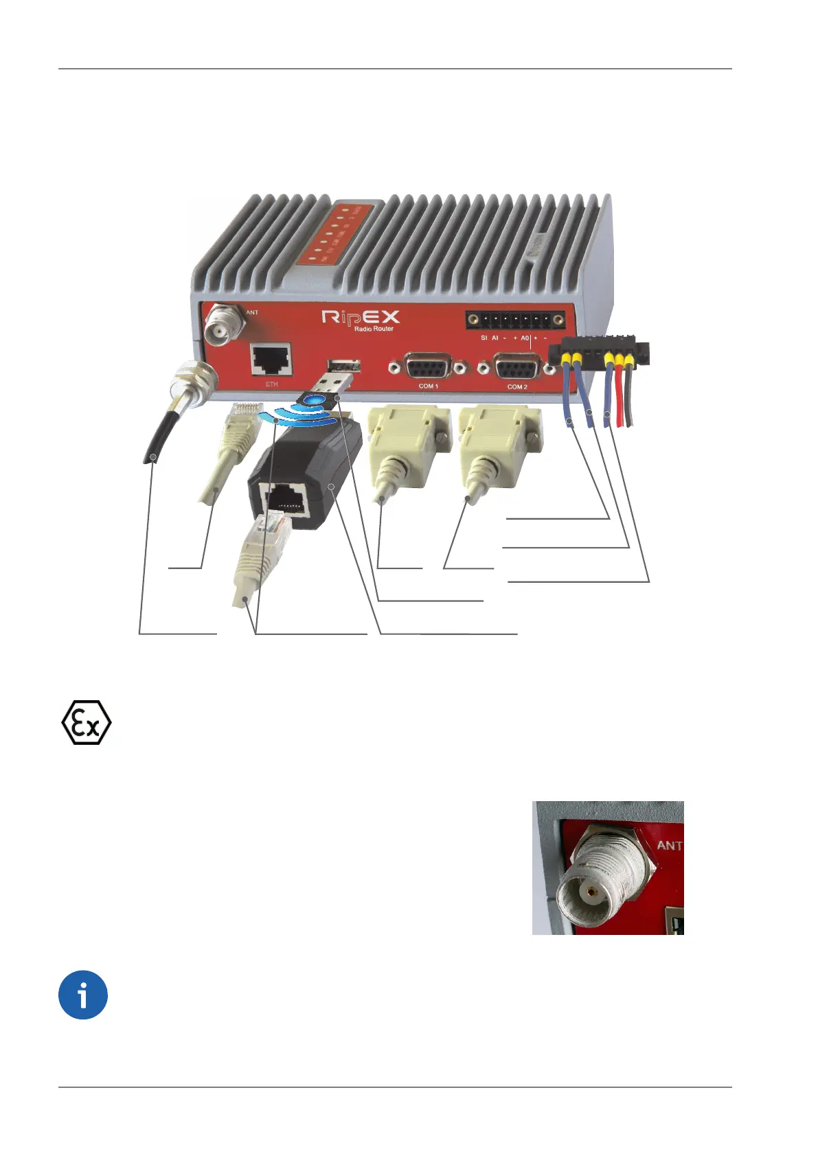 An antenna can connect to RipEX via TNC female 50Ω connector.