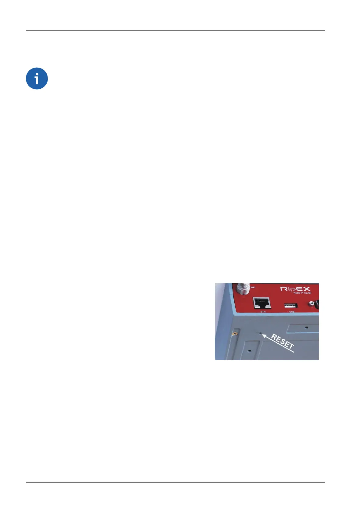 A reset button is situated on the underside of each RipEX unit. The button support multiple functions.