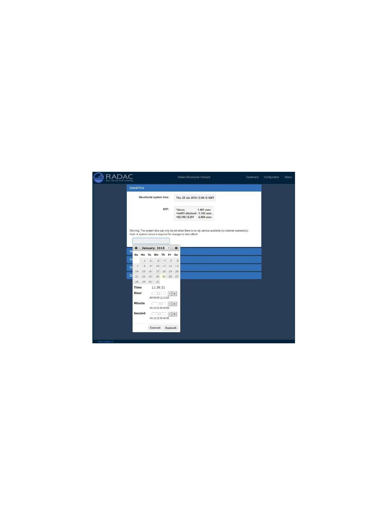 while the system is used, it is thus advised to use the NTP service.