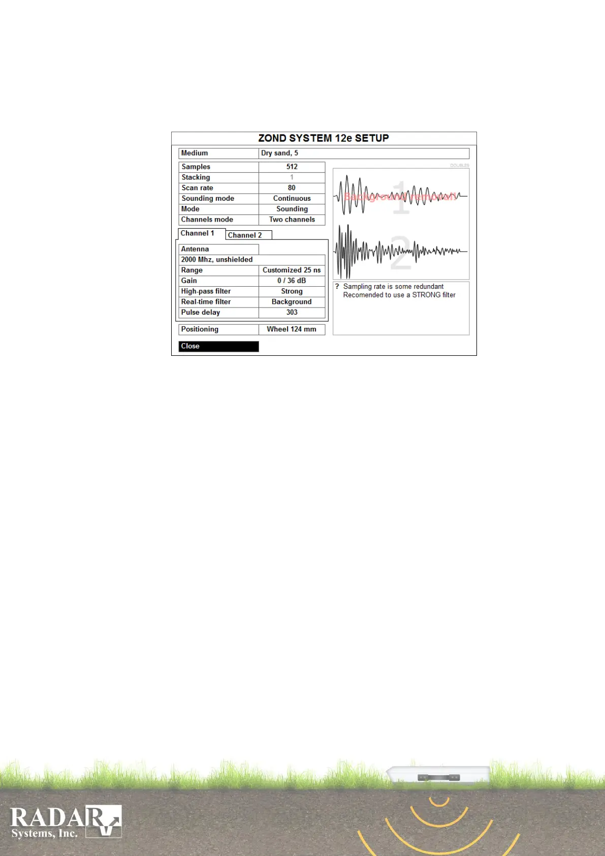sounding, Georadar will perform continuous sounding until you terminate the process