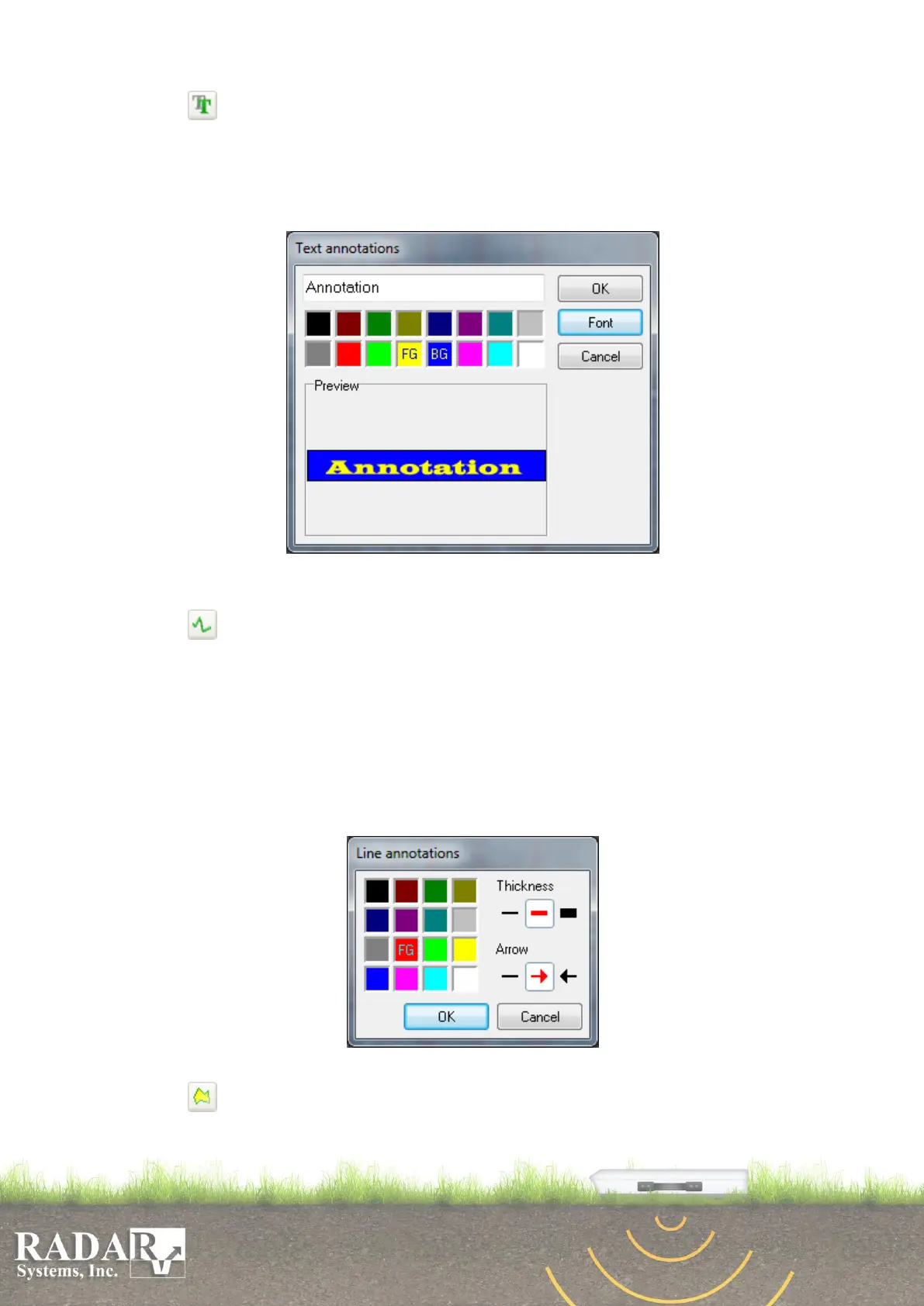 o Text – adds an annotation text. Press the left mouse button on the profile