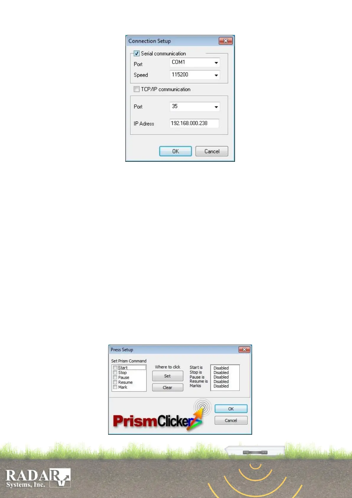 Fig.C4. PrismClicker connection setup dialog window